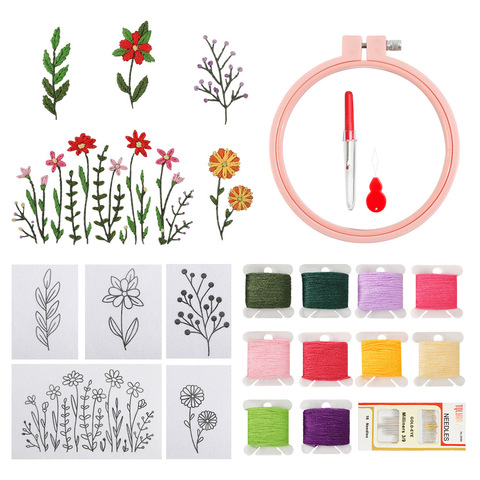 Hecho a mano cuatro estaciones paisaje bordado DIY Material manualidades paquete punzón aguja bordado Kit