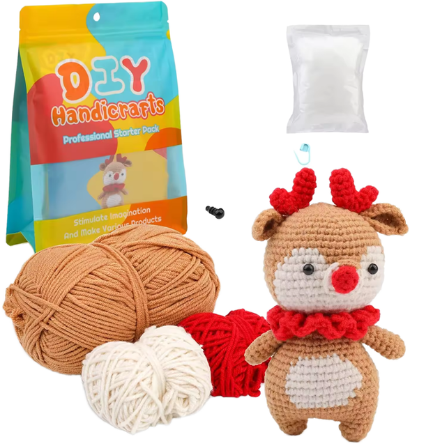 Muñeca tejida de renos hecha a mano, bolsa de hilo acrílico de algodón con forma de Animal, Kit de ganchillo creativo DIY, juguetes de pasta